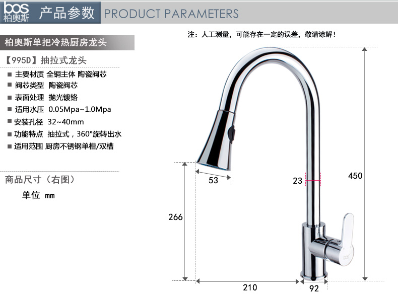 冷熱廚房龍頭(抽拉)