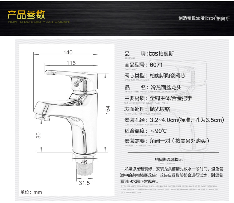 冷熱面盆龍頭