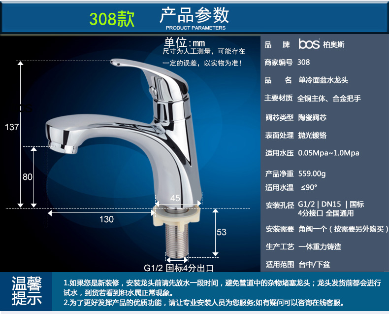 單冷面盆龍頭