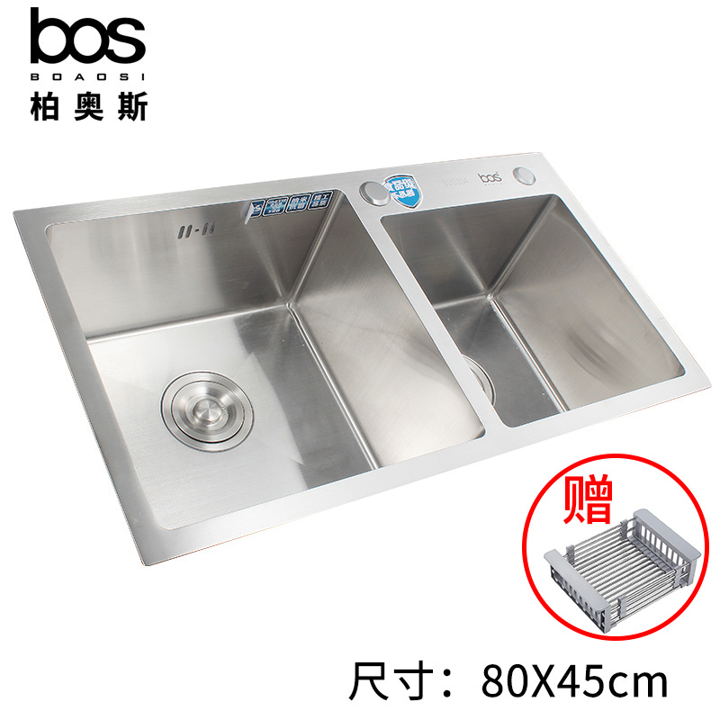 手工雙盆帶濾水籃(SUS304)
