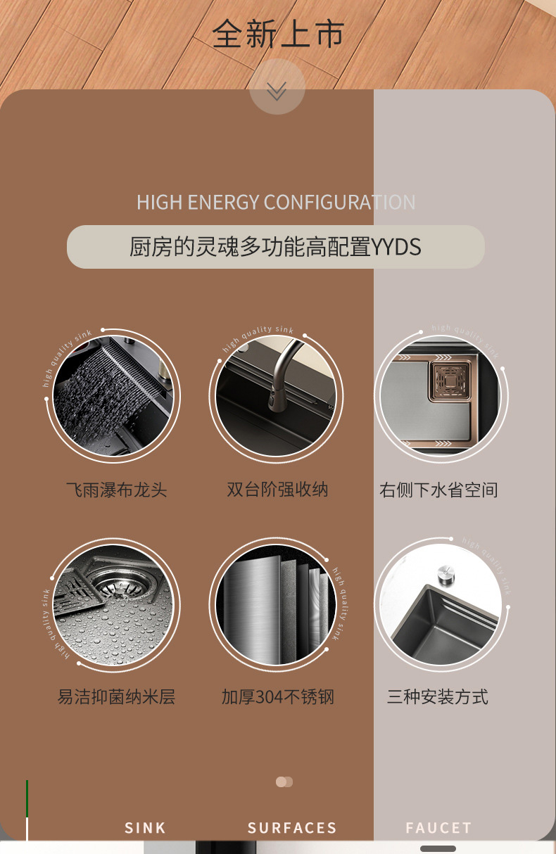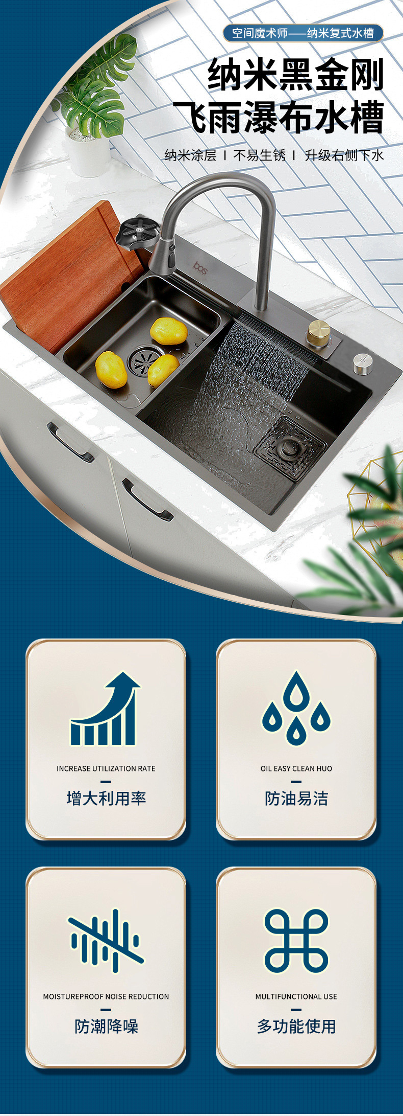 多功能飛雨瀑布納米大單盆